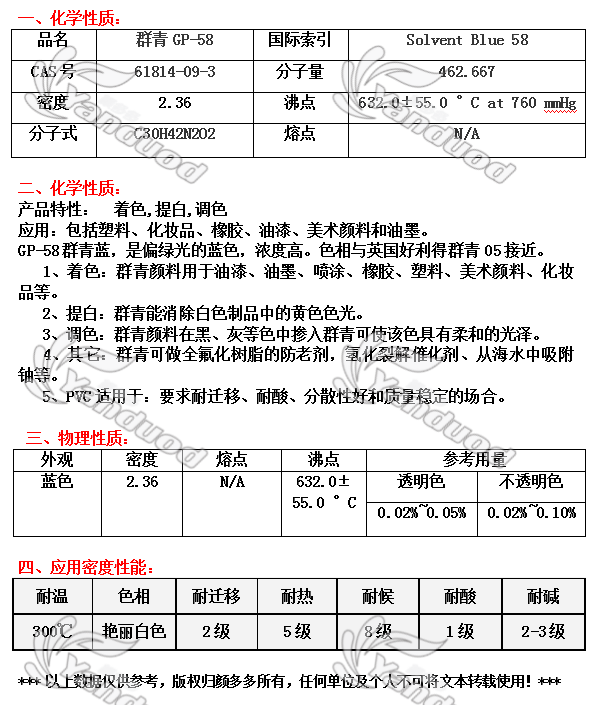 商品属性 [编号] 5406 [生产商] 纽碧莱 [规格] 25公斤/包 [耐温度] 350度 [色相] 红光蓝 [产地] 罗马尼亚