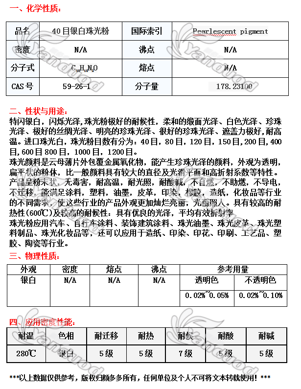 商品属性 [编码] 5309 [生产商] 国产 [规格] 25KG/桶 [耐温度] 280度 [色相] 银白 [产地] 中国