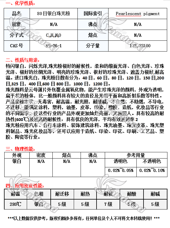 商品属性 [编码] 5311 [生产商] 国产 [规格] 25KG/桶 [耐温度] 280度 [色相] 银白 [产地] 中国