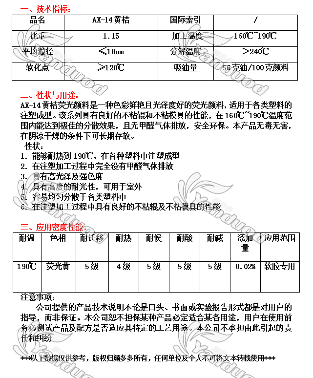 当前位置: 首页 > 荧光颜料系列 > AX-14 黄桔