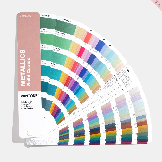 彩通平面设计系统 [Pantone Graphics System] 推出印刷与包装用 655 种金属色彩的8开头及10开头色号完整系列,内含 54 种贴近流行与市场的新色彩,加上一款新的玫瑰金基础油墨。彩通金属色提供有经济效益的色彩选择,便于使用、指定及强化,以产生华丽与动感的效果。指南内含涂层选项,供快速参考数种加强金属色效果的方法,以符合专案需求。彩通色彩品质优异,足以信赖,不论何处均可购得。适用于包装、商标、品牌、海报标志及行销材料。