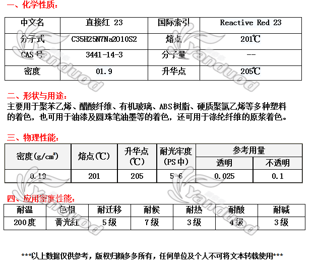 溶剂染料 [编码] 1101 [索引号] 23# [规格] 20公斤/包 [耐温度] 220度 [色相] 黄光红 [产地] 中国 [生产商] 江苏亚邦