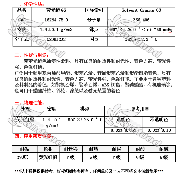 溶剂染料 [编码] 1503 [索引号] 63# [规格] 25公斤/桶 [耐温度] 290度 [色相] 荧光红橙 [产地] 中国 [生产商] 江苏亚邦