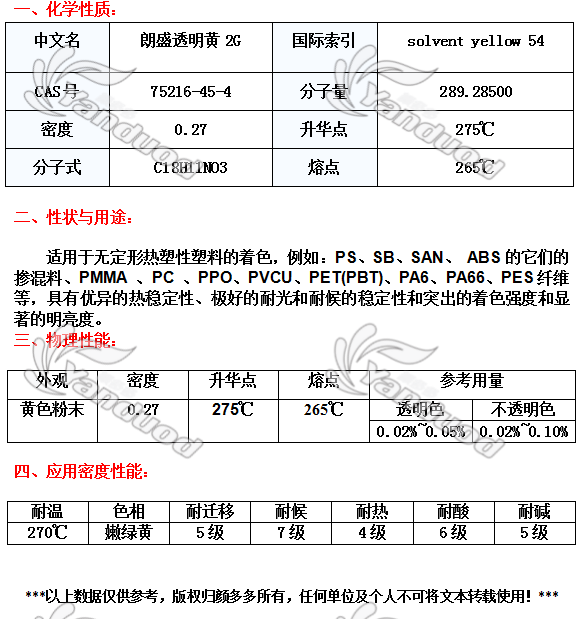 溶剂染料 [编码] 3236 [生产商] 德国朗盛 [索引号] solvent yellow 114 [耐温度] 350度 [色相] 嫩绿黄 [产地] 德国 [规格] 10公斤/包