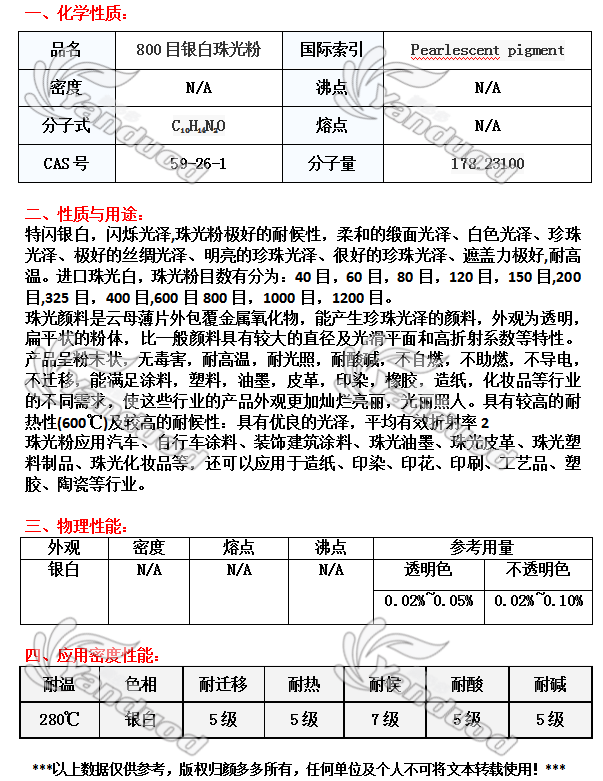 商品属性 [编码] 5302 [生产商] 国产 [规格] 25kg/桶 [耐温度] 280度 [色相] 银白 [产地] 中国