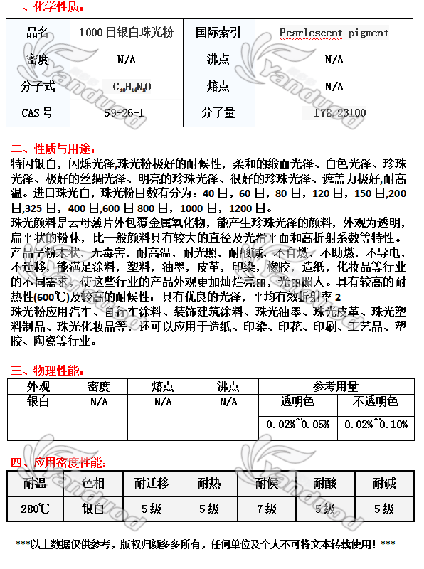 商品属性 [编码] 5301 [生产商] 国产 [耐温度] 280度 [色相] 银白 [规格] 25kg/桶 [产地] 中国
