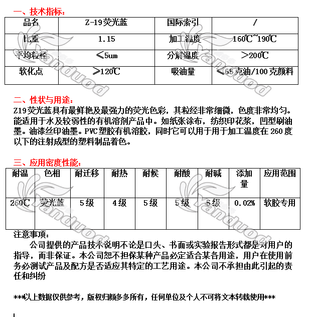 AX系列 [编码] 8219 [生产商] 国产 [耐温度] 260度 [色相] 荧光蓝 [规格] 22.68kg/箱 [产地] 中国