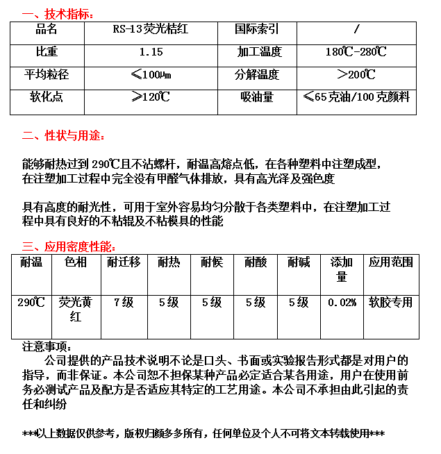 AX系列 [编码] 8813 [规格] 25KG/箱 [耐温度] 290度 [色相] 荧光桔红 [产地] 英国 [生产商] 马来赛旸