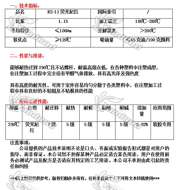 AX系列 [编码] 8811 [规格] 25KG/箱 [耐温度] 290度 [色相] 荧光妃红 [产地] 英国 [生产商] 马来赛旸
