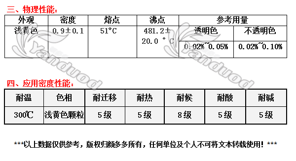 扩散粉 [编号] 911 [生产商] 科莱恩 [规格] 25公斤/包 [耐温度] 300度 [产地] 德国 扩散剂 [色相] 浅黄色颗粒