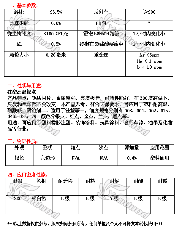 商品属性 [编码] 8501A [规格] 25公斤/桶 [耐温度] 280度 [色相] 银白色 [产地] 中国 [生产商] 国产