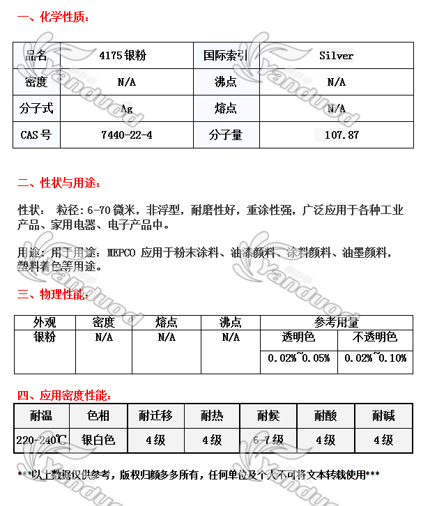 商品属性 [编码] 5101 [规格] 25公斤/桶 [耐温度] 220度-240度 [色相] 银白色 [产地] 巴西 [生产商] 巴西ALD0R0