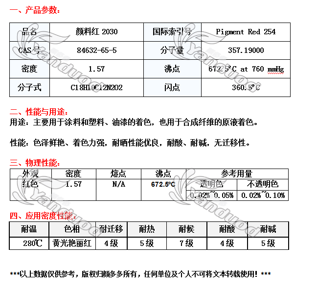 有机颜料 [编码] 3114 [索引号] 254# [规格] 10公斤/包 [耐温度] 280度 [生产商] 百合花 [产地] 中国 [色相] 黄光艳丽鲜红